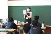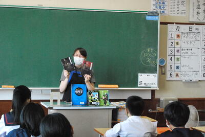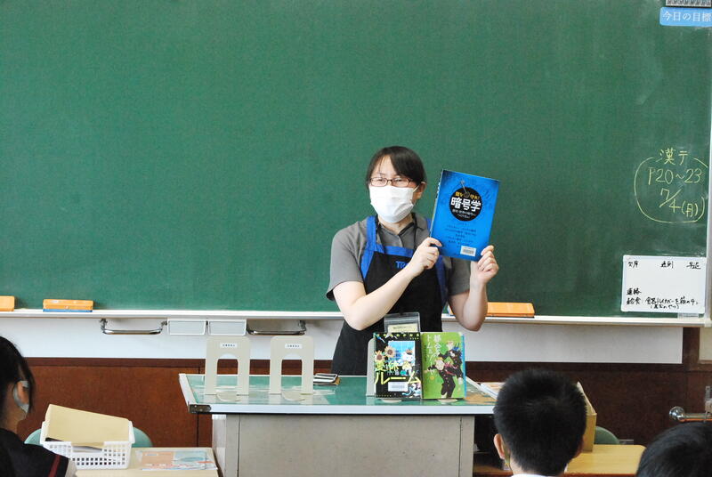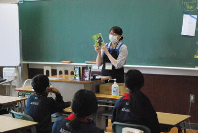 7月1日(金)の朝読書の時間に、1年1組で図書司書の對馬さんによるブックトークを実施しました。