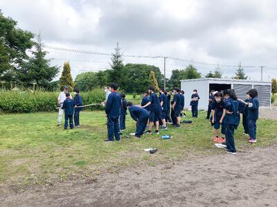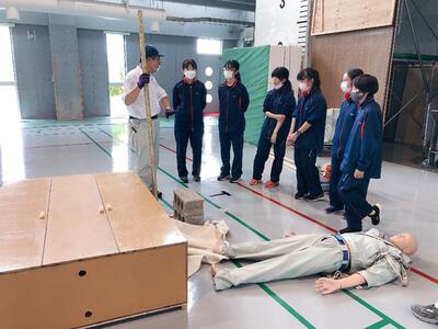 消火体験や応急担架作成などを行い、災害が起こった場合に備えて様々な経験をすることができました。