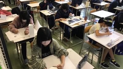 毎日の授業や放課後学習などで頑張ってきた成果を発揮して、真剣にテストに臨んでいます。