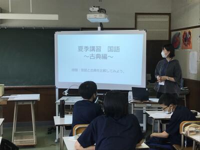 3年1組で夏休みおすすめの本を紹介してもらいました。3年生には、受験に関わる本の紹介がありました。「眠れる美しい生き物」という本が、高校入試の国語の問題に使われたことや『「きれいな字」の絶対ルール』という本で、願書や推薦書で書く字を少しでもきれいにすることができますよ!と紹介がありました。これは!大事!!と感じたのか生徒たちは、真剣に話を聞いていました。