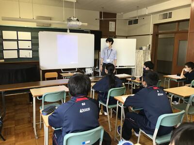 小学校と中学校のギャップを減らす小中一貫教育の取り組みの一つとして、向陽台小学校と泉沢小学校の6年生が向陽台中学校にやってきました。