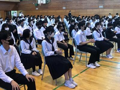 大きな事件や事故もなく、生徒たちは無事に登校して全校集会を迎えました。