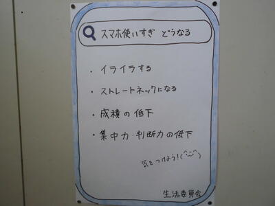 感染症予防対策や、スマホ-30分、家庭学習+30分に向けて、