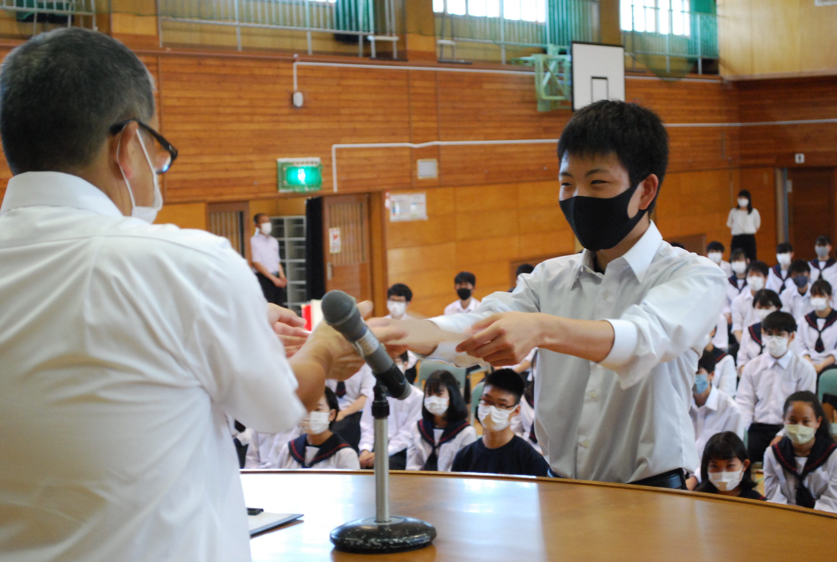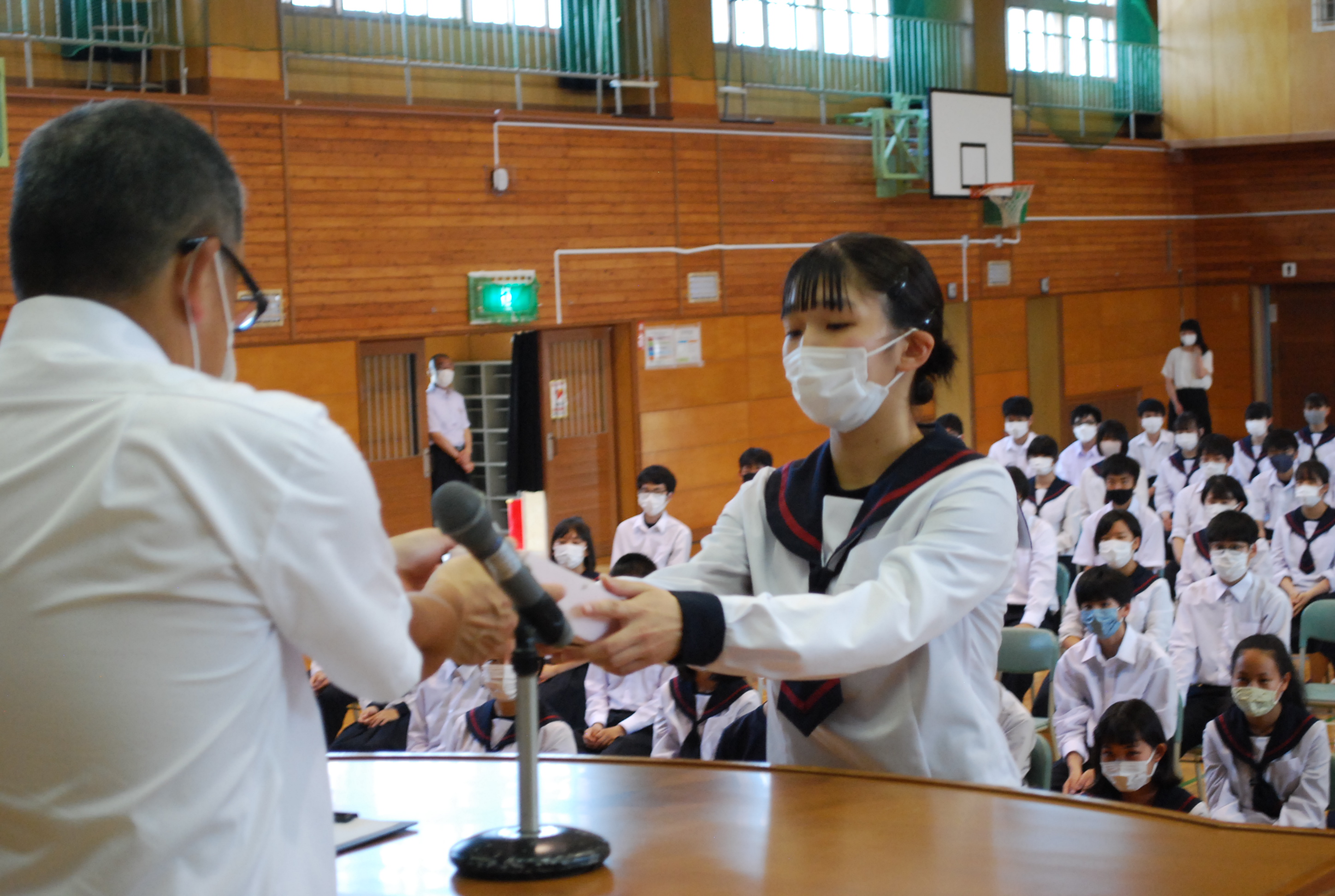 集会では管内中体連の表彰やこれから始まる夏休みの過ごし方を確認しました。