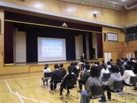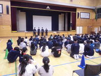 行ました。その後、児童向け、保護者向けに中学校の生活などを説明しました。