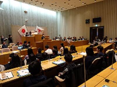 議会事務局の方に案内していただきながら、市議会のしくみや市議会議員の仕事について学びました。