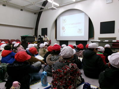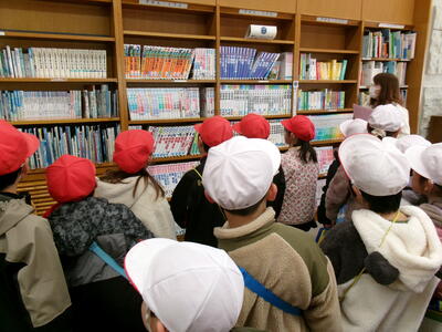 図書館では、司書さんから本の並び方や貸し出しの仕組みについて説明を聞きました。みんな真剣に話を聞きながら、たくさんの本がきれいに並んでいる様子に興味津々でした。