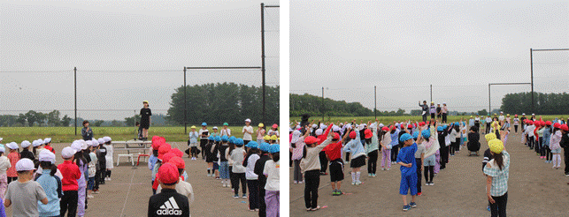 いよいよ、今週土曜日が運動会となりました。今日は全学年で全体練習です。開会式の入退場や立ち位置、礼・拍手・掛け声のタイミング等、そしてラジオ体操の練習もしました。当日は、みんなで力を合わせて思い出に残る一日にしたいと思っております。
