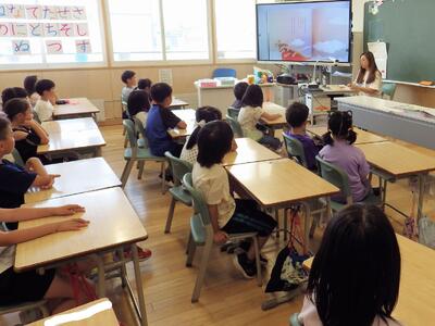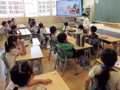 読み聞かせ 投稿日時 : 06/25 編集長 カテゴリ: 本日は、PTA図書ボラのみなさんによる読み聞かせが行われました。1.2年生の児童対象でしたが、各クラスでは本の世界にどっぷりと浸っていました。1年生のクラスの様子を紹介します。