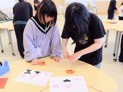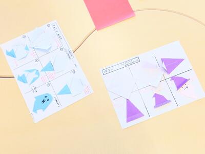 今週は、図書ボラのみなさんによるイベントデーです。「ハロウィンおりがみ会」と題して、さまざまなキャラクターをおりがみを使って自分だけのオリジナル制作を行っています。ボランティアの皆様の「説明書」を見ながら、時にはアドバイスを受けながら、上手に完成させていました。
