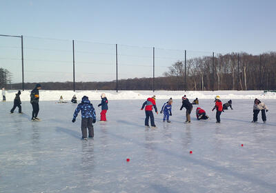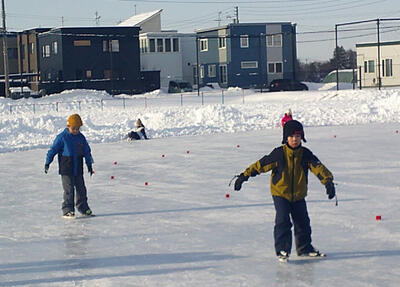 本日より、スケートリンクが使用できるようになりました。早速、午前中は2年生、午後からは3年生が授業を行っていました。