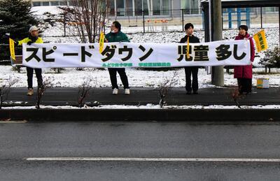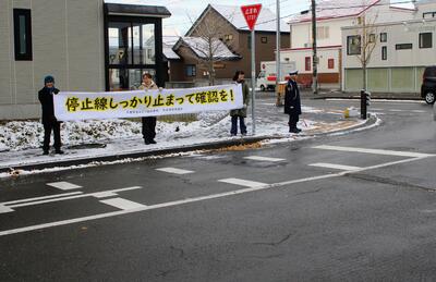 12日(水)に本校学校運営協議会主催で、冬季のセーフティーコールを行いました。開催前の会議の中では、それぞれの町内会にお願いして3か所で行うことが良いのでは、という意見があり「28号通り」「みどり台歯科前」「学校前」の3か所で行いました。あいにくの悪天候でしたが、13名の方の参加があり、ドライバーや歩行者などに交通安全の啓発を行うことができました。寒い中、地域の皆様・保護者の皆様のご協力に感謝いたします。