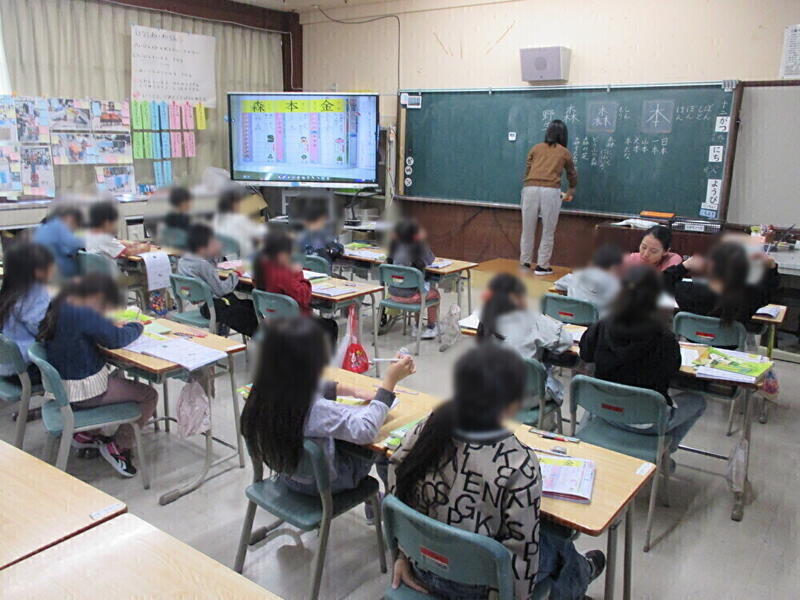 1年生は、国語の学習をしていました。言葉の学習で、日付けや曜日を表す言葉について学習していました。「一日」(ついたち)や「二日」(ふつか)など、特別な読み方になる漢字が多く、一つ一つ確認しながら読んでいました。