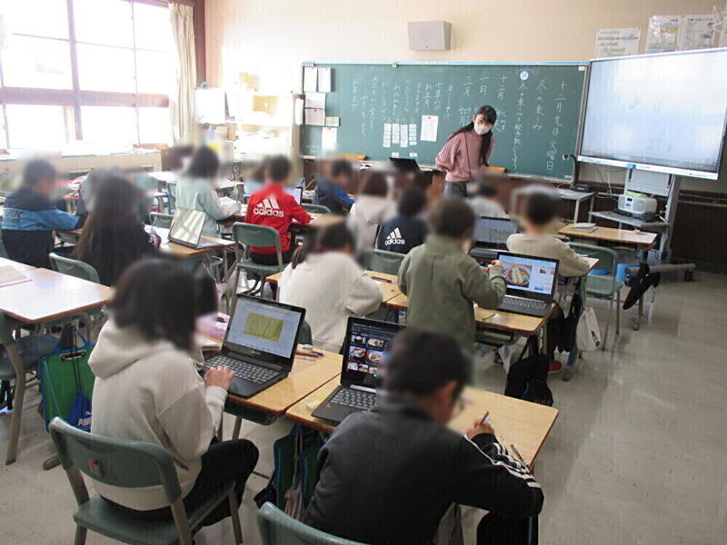 タブレット端末の使用法について学習していた学級は、電源の入れ方やインターネットへの接続の仕方などを確認していました。画面をタップする姿は、慣れているようにも見えました。