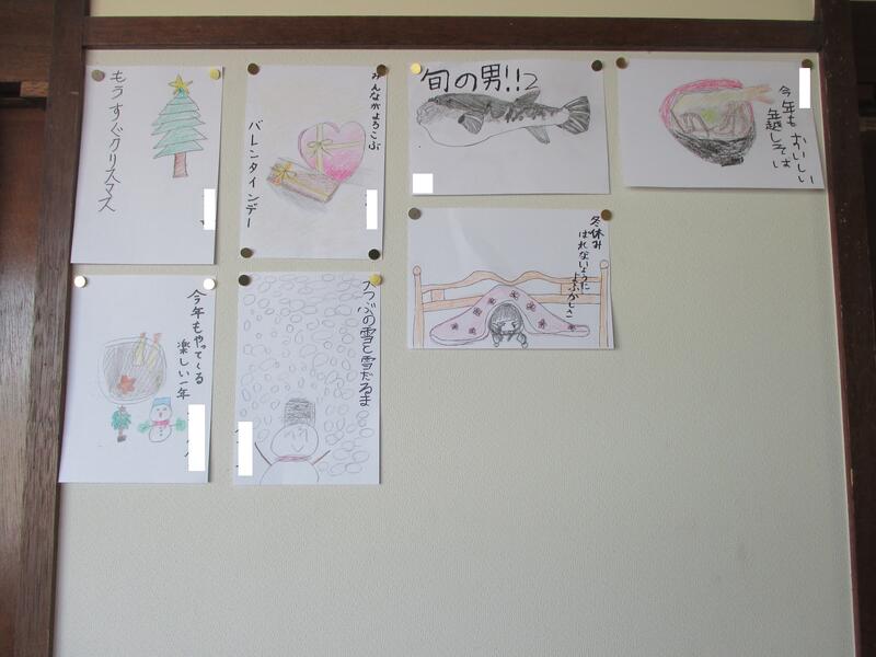 4年生も、国語の学習をしていました。「冬の楽しみ」についてふり返る学習で、自分の冬の楽しみを絵手紙にして表現していました。冬には、クリスマス、お正月、冬休みなど、楽しいことがいっぱいですね。すてきな絵手紙がたくさんできていました。