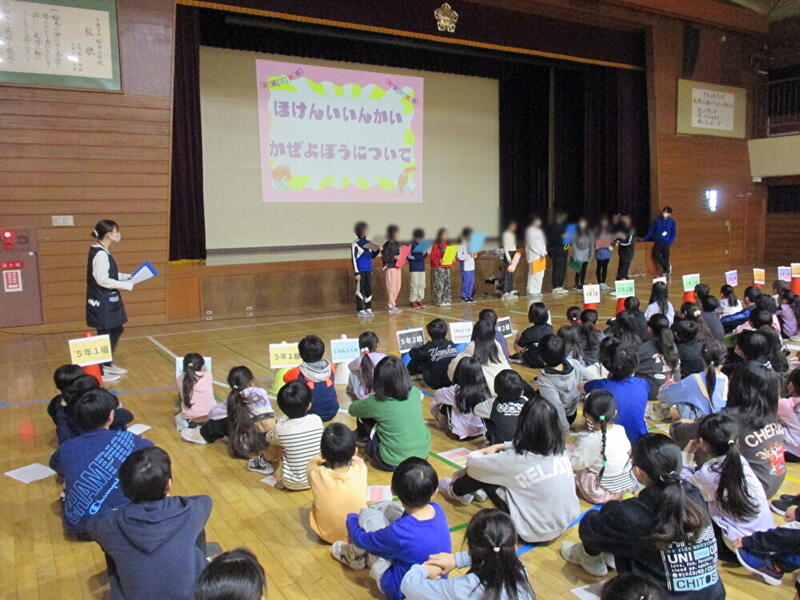 保健委員会からは、風邪予防に関するクイズがありました。くしゃみは、2~3メートルもとぶという事が分かりましたね。マスクや咳エチケットがとても大事だと分かります。
