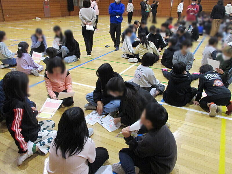 最後に、いよいよ他の学年の子と交流する集会が始まりました。自分の「好きな教科」「すきなこと」「得意なことを」を発表し、交流し合いました。高学年がうまく、話し合いをリードしていました。
