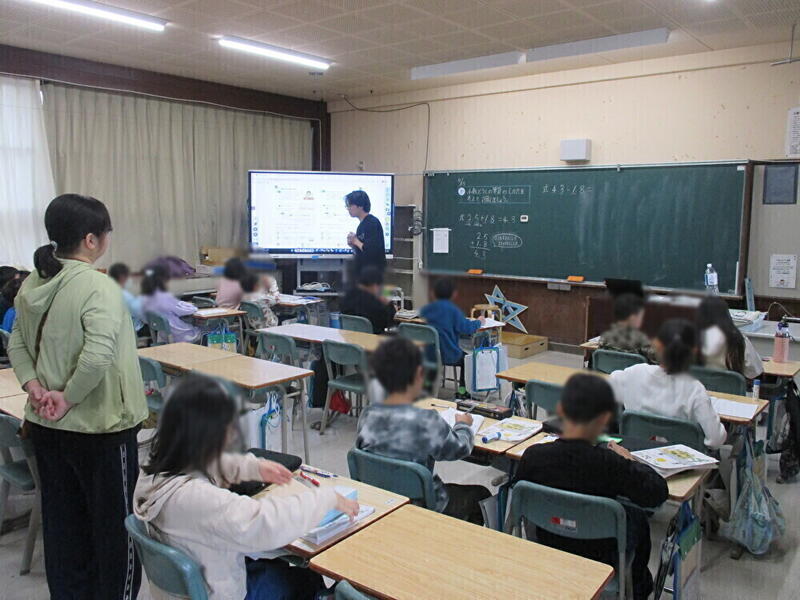 3年生も、算数の学習をしていました。小数の学習でした。小数の筆算の計算方法について考えたり、理解したりする時間でした。小数点なしの整数の繰り下がりのある引き算の筆算につまづきの見られた子もいましたが、位や小数点の位置に気をつければ、整数の筆算の同じように計算できることを理解していました。