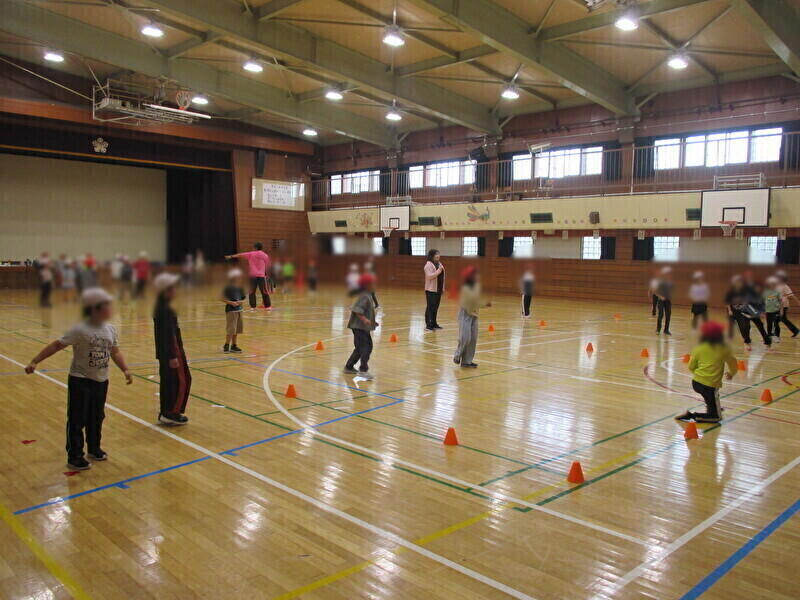 2年生は、体育の学習をしていました。楽しそうにドッジボールのゲームをしていました。
