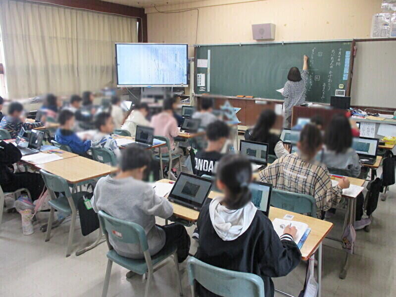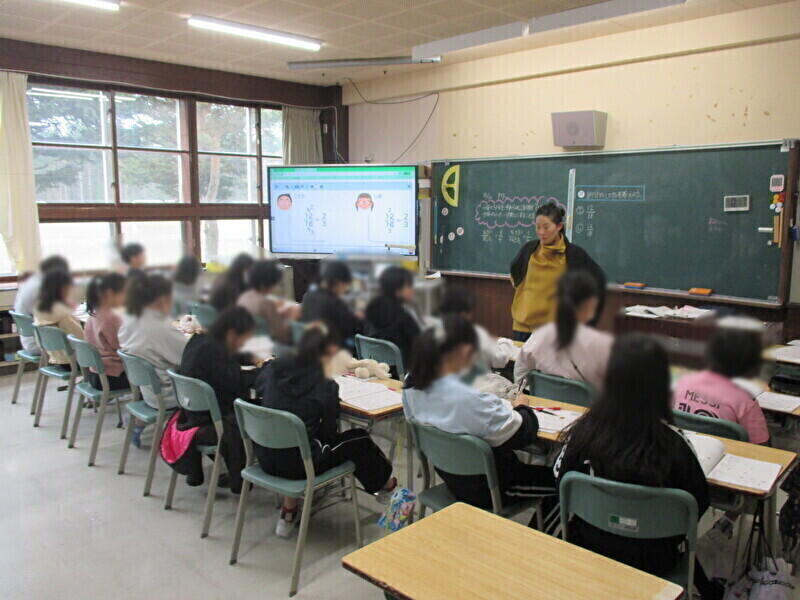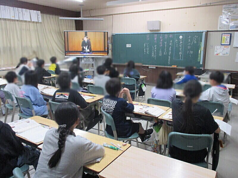 6年生は、国語の学習をしていました。古典芸能についての学習で、まずは動画で古典芸能とはどんなものか、確認していました。文字や写真で確認するのではなく、動画だと手ぶりや表情などからも、そのおもしろさが伝わります。