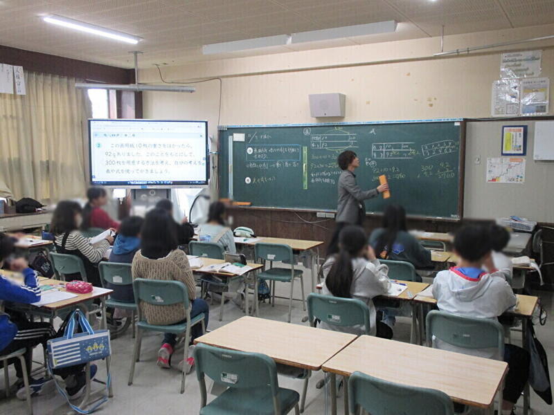 いろいろな解き方にふれた後、定着問題を自分のやりやすい方法で解き、その解き方についても交流し合っていました。最後に今日の学習のふり返りをノートに書いていました。