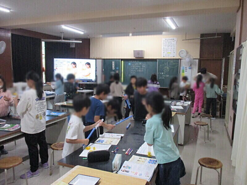 4年生は、国語と理科の学習をしていました。国語の学習をしていた学級は、「話す聞く」の学習で、みんなが納得する結論となるような話し合いをするためにはどうしたら良いか考えてきましたが、今日は、これまで学習してきたことを生かして、実際に話し合いをしていました。「多数決は、みんなの意見が生かされないから」、「決まったことに文句を言う人がいた」などの課題を自分たちなりに解決できるように、みんなの考えを尊重しながら話し合いを進めていました。