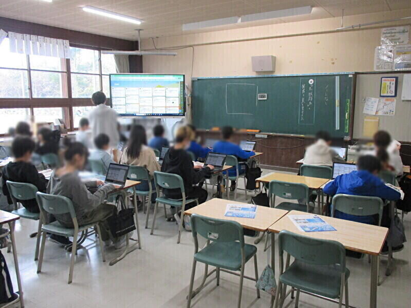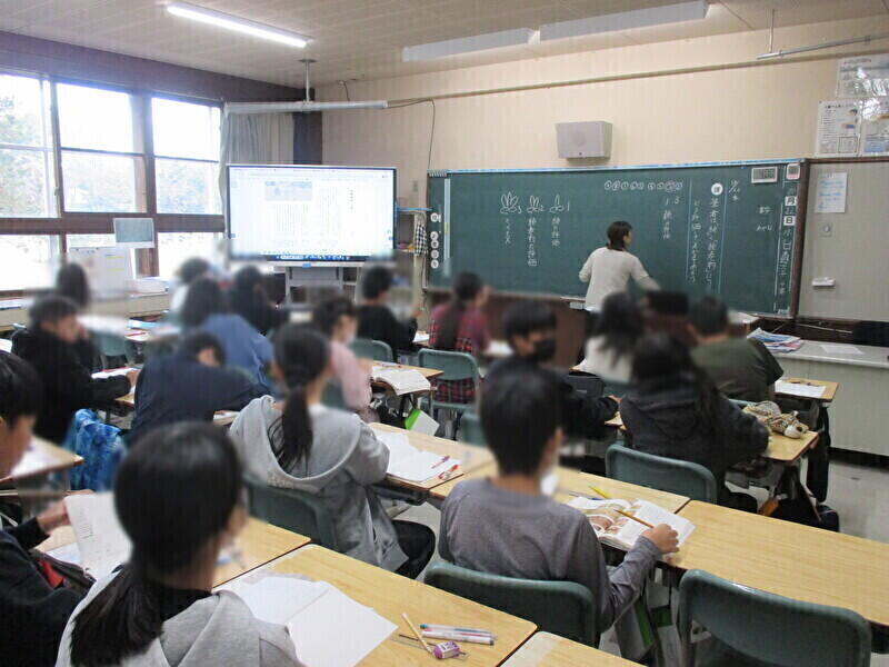 6年生は、国語の学習をしていました。「鳥獣戯画」について解説している「『鳥獣戯画』を読む」という説明的な文章の学習をしていました。筆者がどのように「鳥獣戯画」を評価しているか読み取っていたり、筆者の工夫について読み取っていたりしていました。タブレット端末を活用して読み深めていた学級は、次々にアップされるクラスの友だちの意見も参考にしながら考えていました。