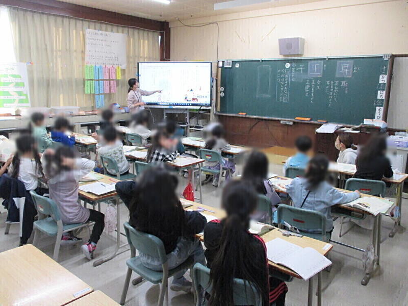 6年生も、国語の学習をしていました。1つの学級は、同音異義語の学習をしていました。自分で同音異義語を調べて、見つけた同音異義語を友だちと交流していました。