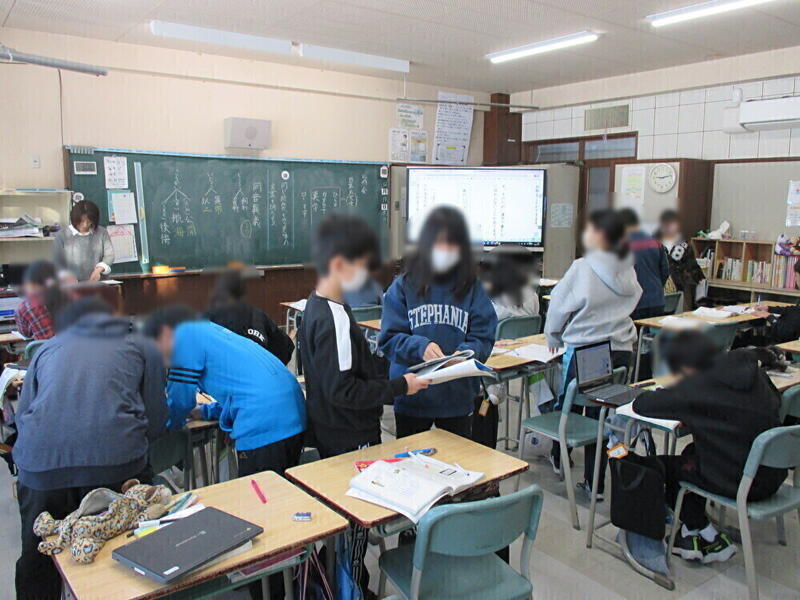 もう1つの学級は、詩の学習でした。3つの詩について、情景を表す表現から感じたこと、受け取ったことをノートにまとめ、交流し合っていました。