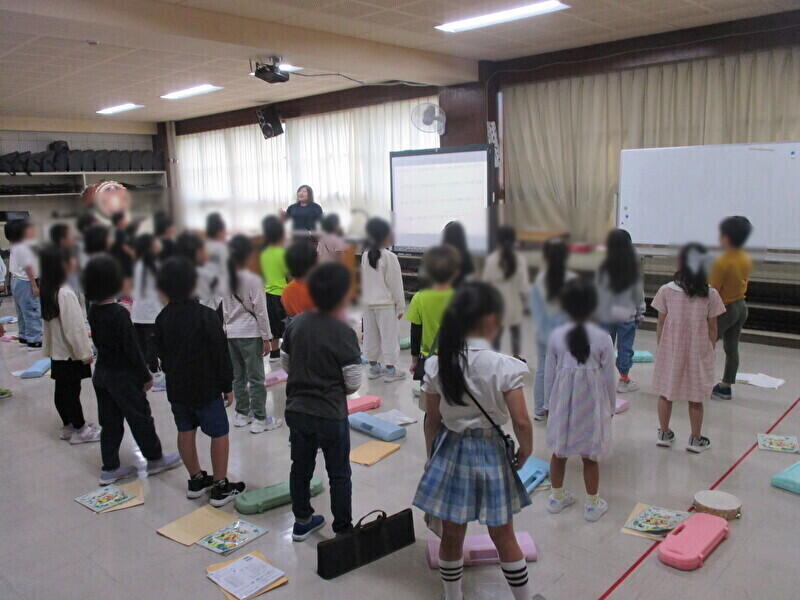 2年生は、音楽の学習をしていました。「音楽のおくりもの」という歌を元気に歌っていました。