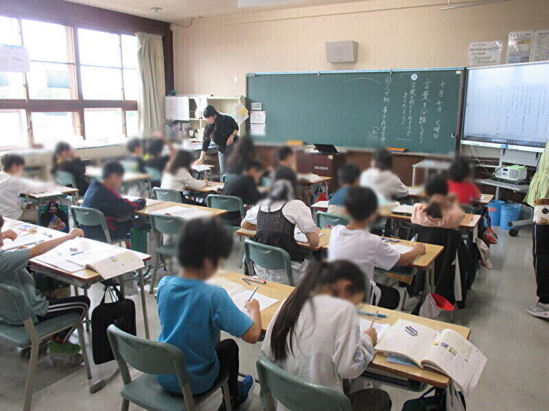 4年生は国語の学習をしていました。言葉の学習をしていました。「人や物、事を表す言葉」、「動きを表す言葉」、「様子を表す言葉」に分類するすることができ、それらの言葉のはたらきや使い方について学習しました。