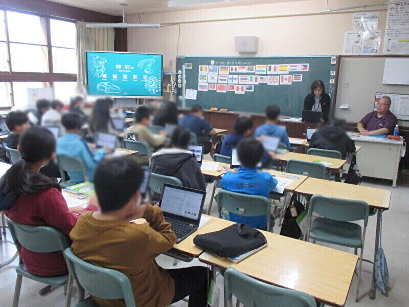 6年生は、英語と社会の学習をしていました。英語の学習をしていた学級は、行ってみたい外国について調べ、それについて英語で話す内容について考えていました。