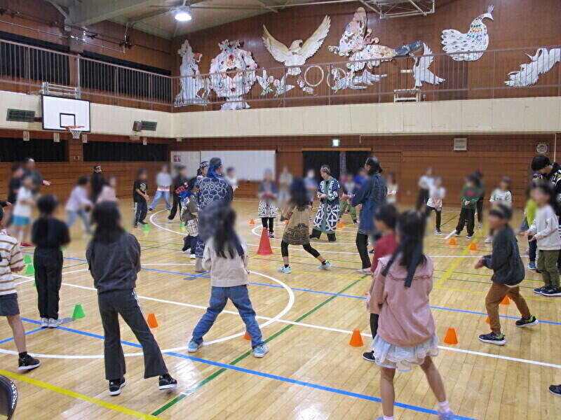 また、今日は、2から4時間目に講師の先生方をお招きし、3年生のアイヌ文化学習がありました。「きつねのチャランケ」という昔話を日本語とアイヌ語で読んでいただきました。アイヌ語で昔話を読んでいただいている時、くり返し表現される部分は、子どもたちも一緒にアイヌ語を言いながらお話を聞きました。アイヌの人々は、クマやサケを神に送るために踊りや歌を歌っていたと教えていただき、神をお迎えする踊りを教えていただき、一緒に踊ることができました。自然を大事にしながら生活していたアイヌの人々について学ぶことができました。
