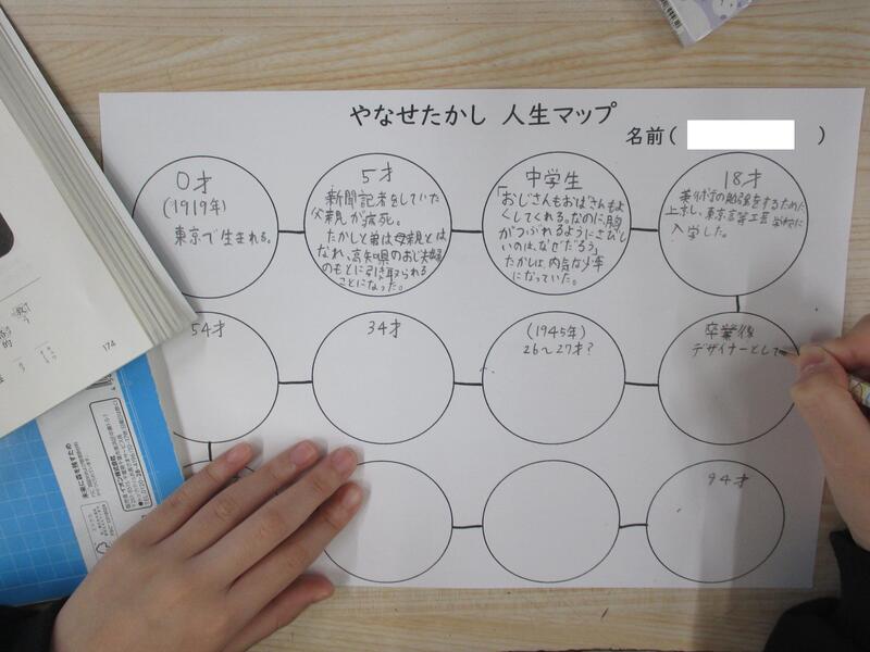 1時間目の5年生は、国語の学習をしていました。やなせたかしさんの伝記を読む学習でした。やなせたかしさんの「人生マップ」にやなせたかしさんの一生についてまとめていました。