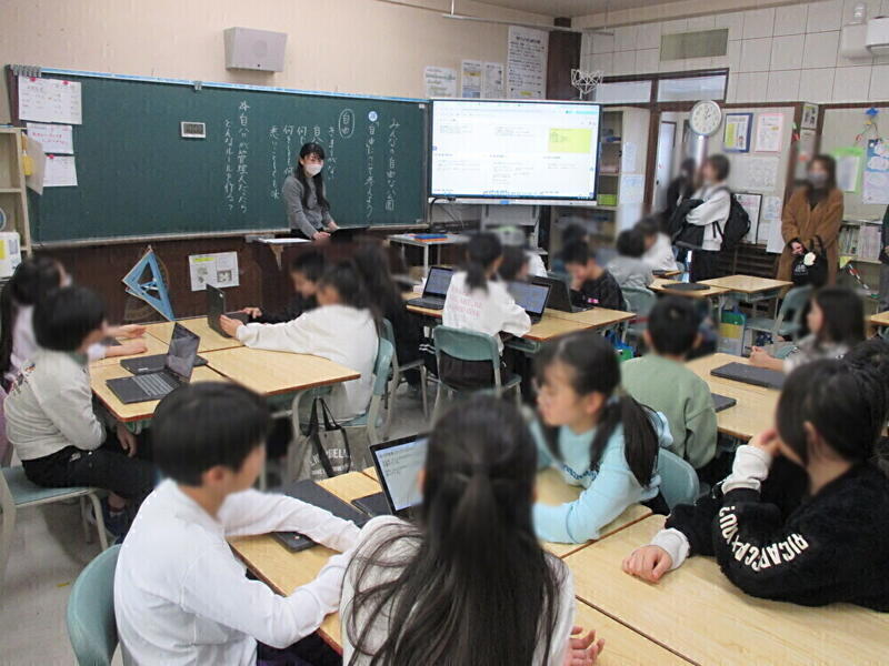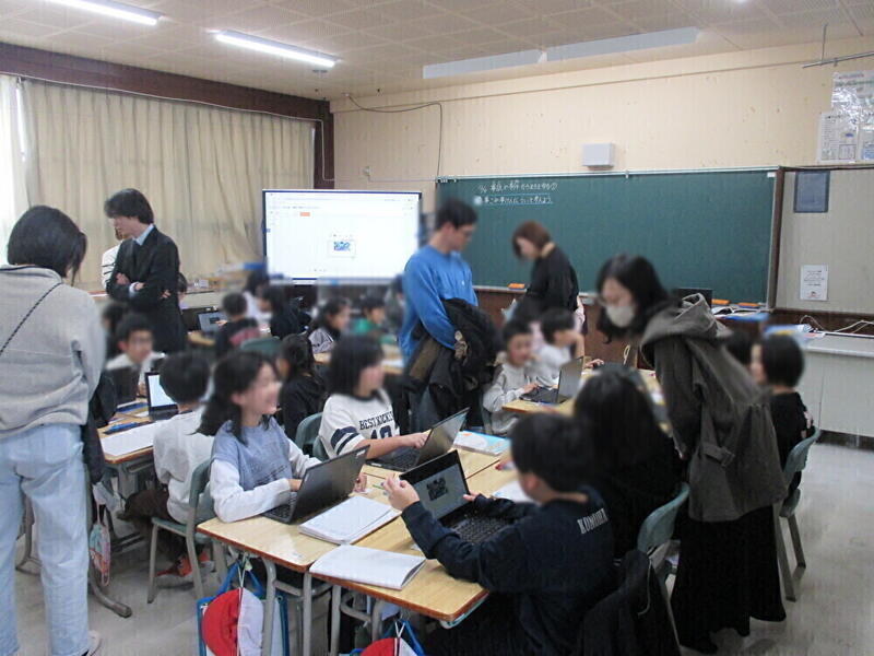 5時間目は、中学年の参観日でした。今日も、たくさんの保護者の皆さんに参観いただき、ありがとうございました。3年生も、4年生も、タブレット端末の「オクリングプラス」というアプリを使って、自分たちの考えを共同編集する学習でした。