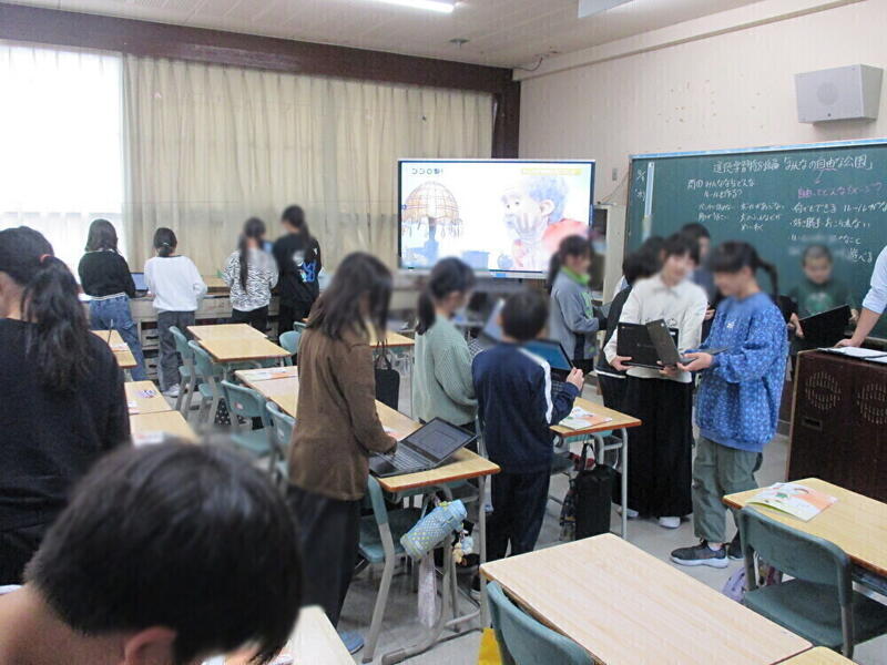 4年生は、道徳の学習でした。「自由」について考えていました。自分が公園の管理人だったら、どんなルールを作るかについて、自分たちの考えを交流していました。いろいろな考えにふれた結果、学習の終わりのふり返りの時には、自由に対する考えが深まったり、多面的に考えている子がたくさんいました。