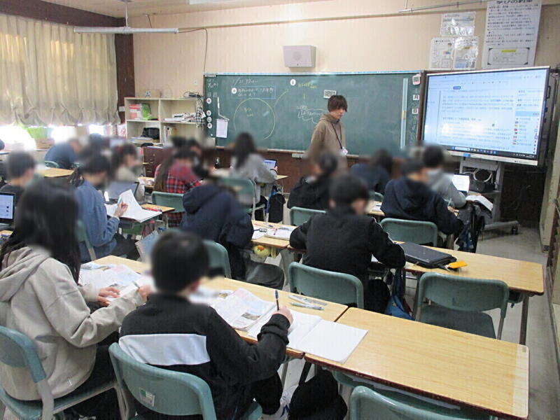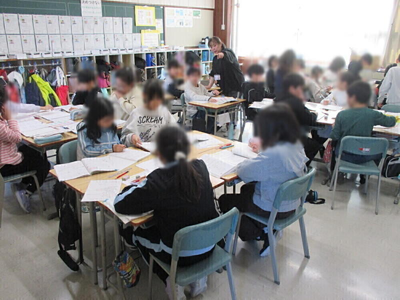 6年生は、社会と外国語の学習をしていました。社会を学習していた学級は、昭和の戦争がどのようにアジアや太平洋に広がっていったかについて、それぞれ自分で教科書やインターネットで調べ、まとめていました。
