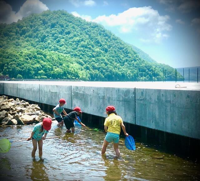・楽器の音と自然の音を比較した場合、周波数帯の幅には大きな差が見られ、その刺激による音に関わる諸感覚の発達への影響にも差がある。ピアノの音ひとつひとつは弦を叩いて出す音であり周波数としては単純であるのに対し、木の葉が風でさやさやと揺れる音、波の音、雨の音などの自然の音はたくさんの周波数帯成分を含んだ非常に豊かな音であるため、自然の音の方が諸感覚の発達には効果的であると述べています。・・・自然の中の遊びでは、自ずと多様な動作を繰り返すこととなる、優れた遊び場であることがわかる。