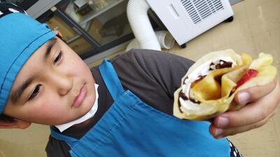 【ゲームの景品がユニークで、『給食おかわり優先券』なんていうのもありました。「献立の隅々まで読み込んで、どの給食の時に使うかをこれから考えます。」と、うれしそうにニンマリ微笑んでいました。】