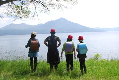 本日、東京から人工知能研究者でラジオ番組「ふんわり」毎週金曜日8:30~のパーソナリティであり「トリセツ」シリーズの作者である黒川 伊保子さんと、某TV番組のチーフ・プロドューサーであり絵本とイラストの画家?の林 幹雄(ミッキ オハヤシ)さんが、支笏湖小を訪れました。目的は、絵本をつくるための現地取材だそうです。