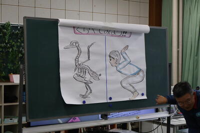 【もっとも衝撃的だったのが、鳥の足の構造です。人間でいうと、鳥はつま先立ちしている状態だそうです。人間の太ももに当たる部分が、体内に入っていて隠れているのだそうです。】