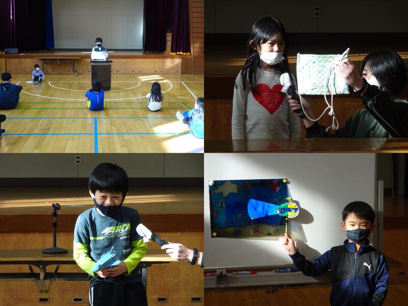 1月18日(水)から第4節がスタートしました。全校集会では、代表児童が、第4節に頑張ることなどを発表し、引き続いて、冬休みに子どもたちが作成に取り組んだ作品の発表会が行われました。どの作品もアイディアいっぱいの力作ぞろいでした。