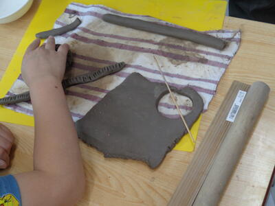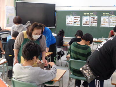 ゲストティーチャーを迎えてすずらん学級で陶芸教室を行いました。皿や湯飲み等をつくりました。