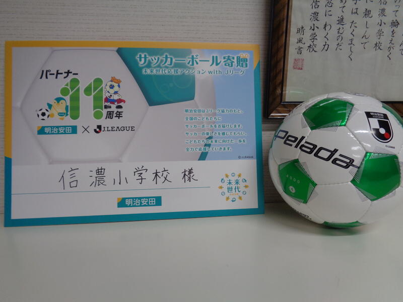 明治安田生命は今年でJリーグとのパートナーシップ11年を迎え、「未来世代応援アクション with Jリーグ」の企画で、本校へサッカーボールを寄贈頂きました。