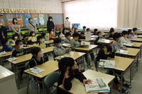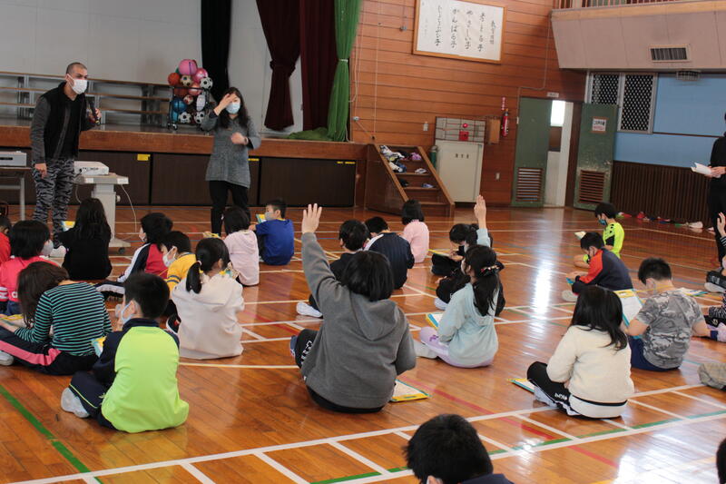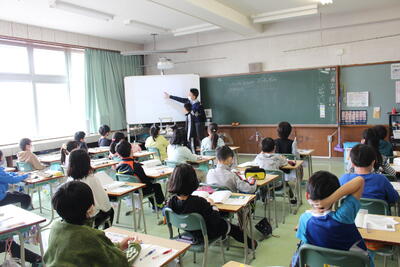 1年生、2年生の教室で国際理解教育がありました。講師の渋谷先生をお招きし、担任の先生と楽しく英会話の学習を行いました。