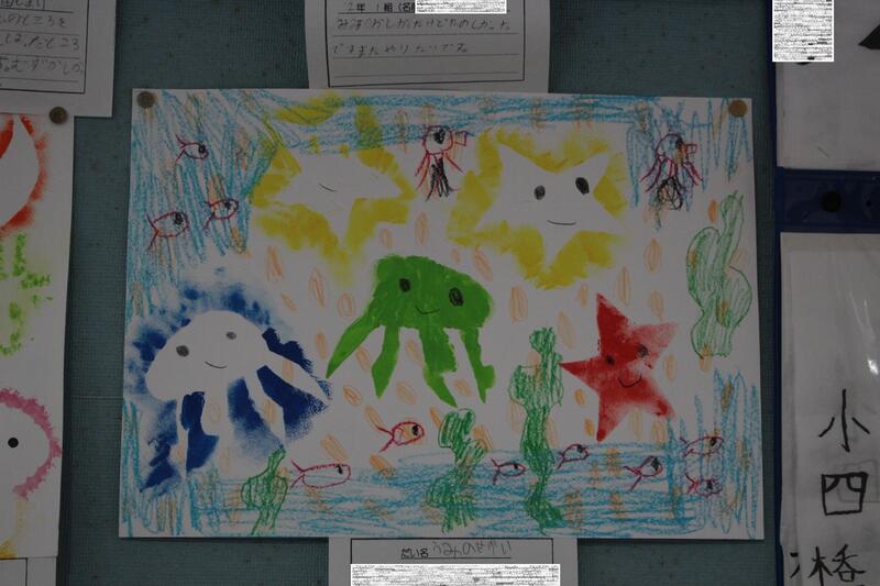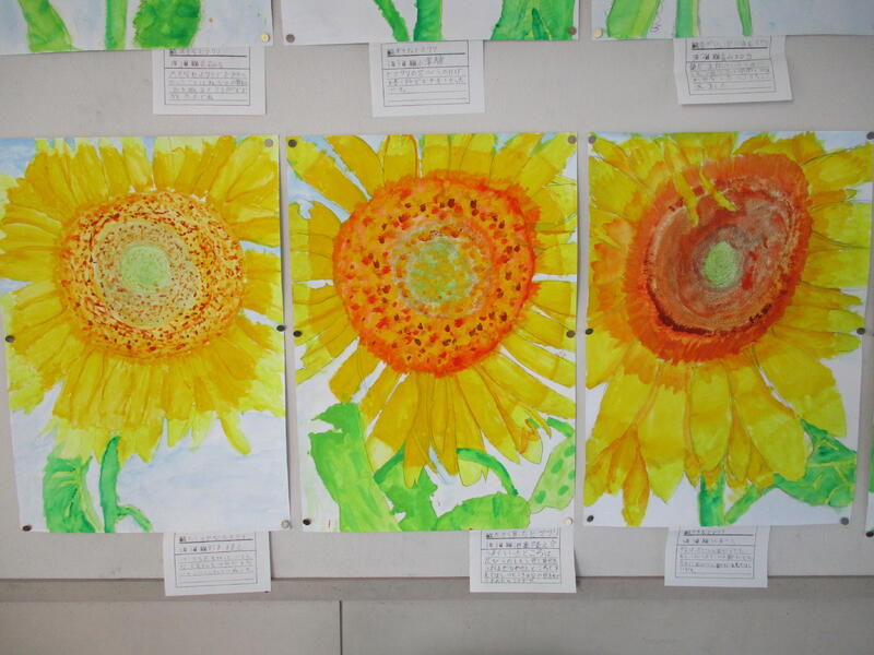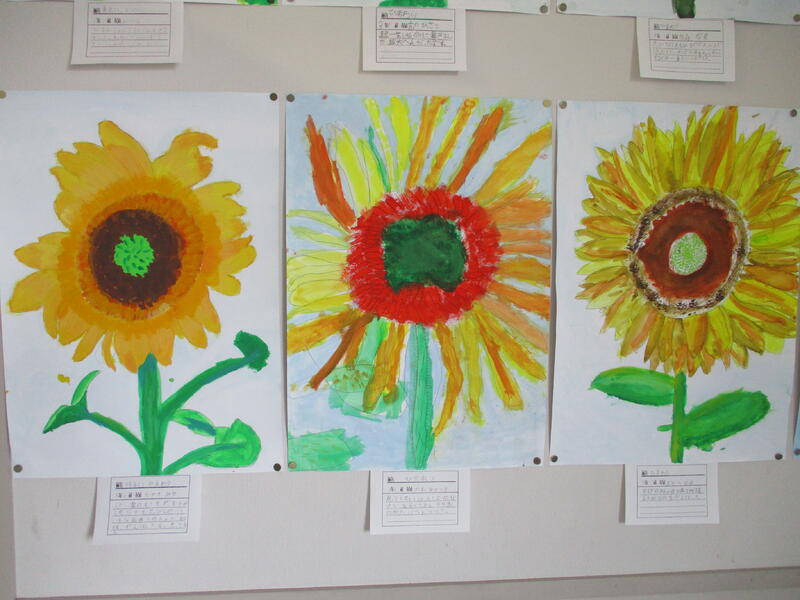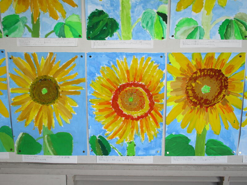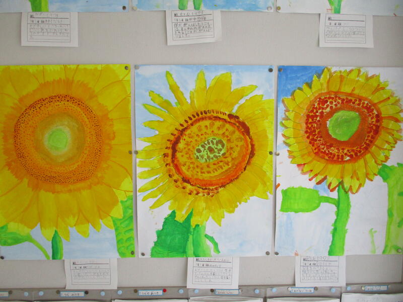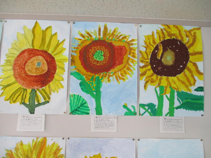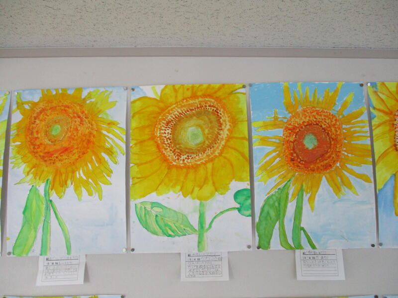 気温があがってきました。もうすぐ夏がやっていきます。1年生はクレヨンでお日さまの絵をかきました。陽気にあふれる作品を紹介します。