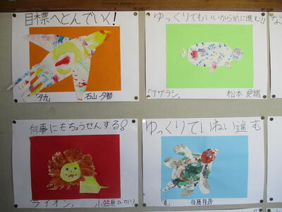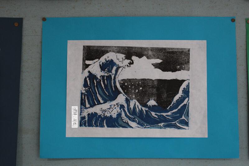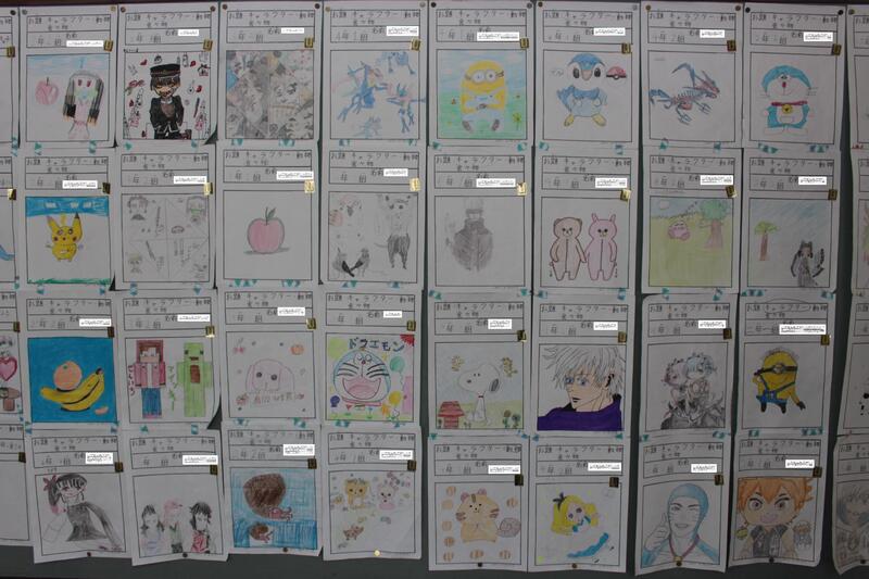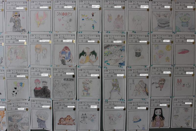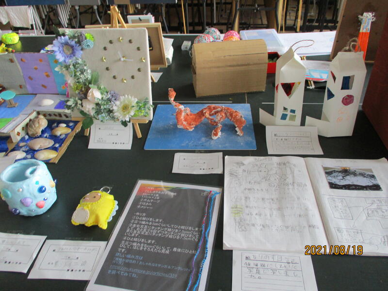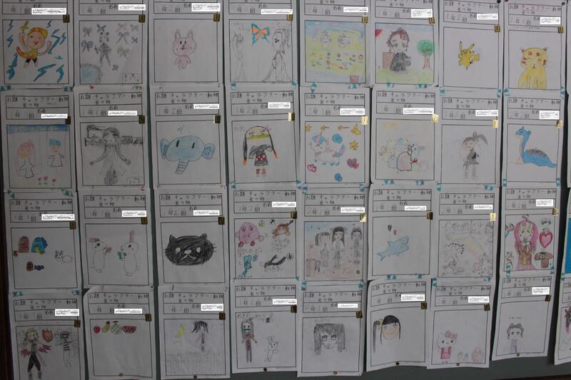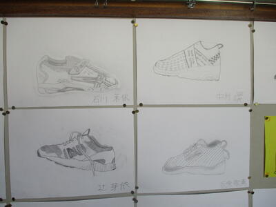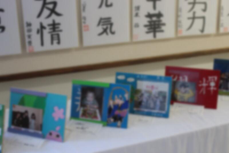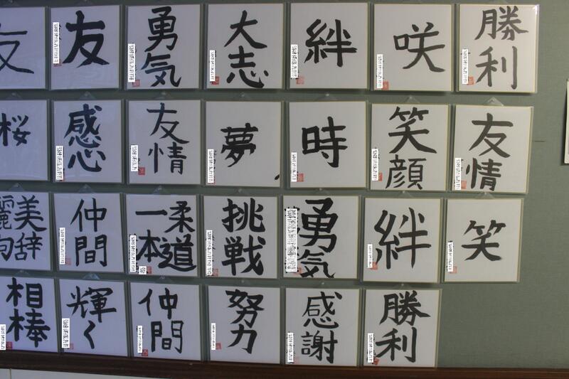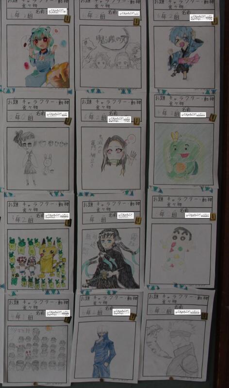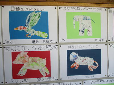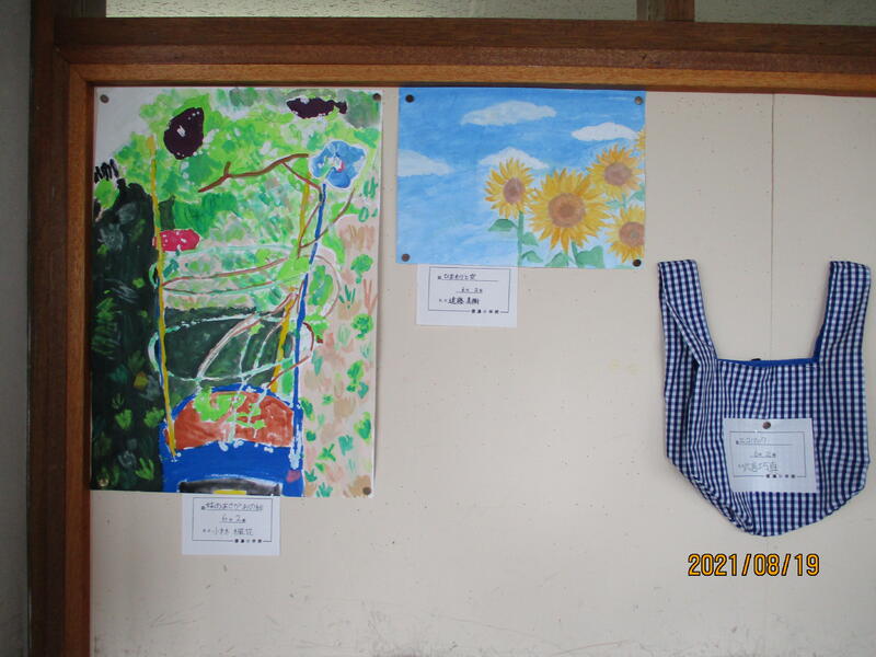 校内作品展が行われています。体育館前廊下に掲示しています。
