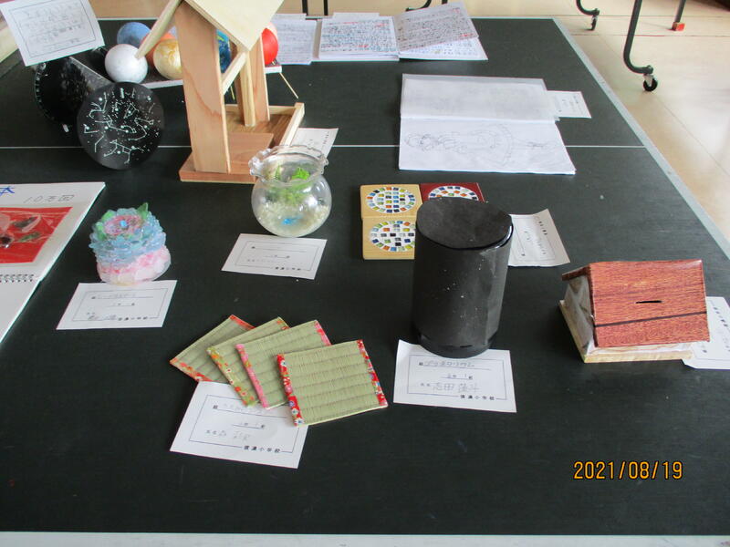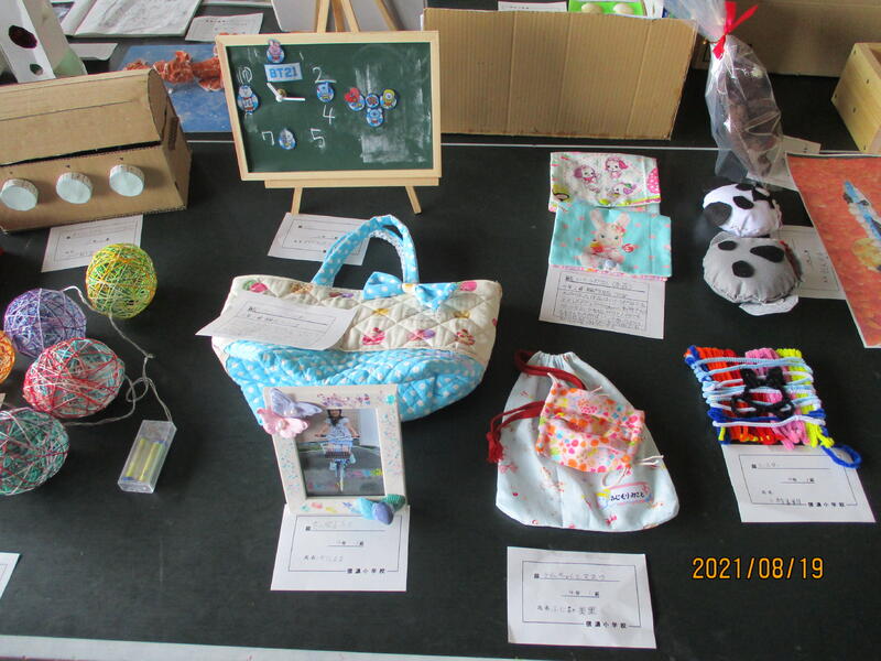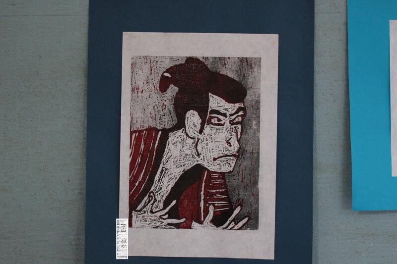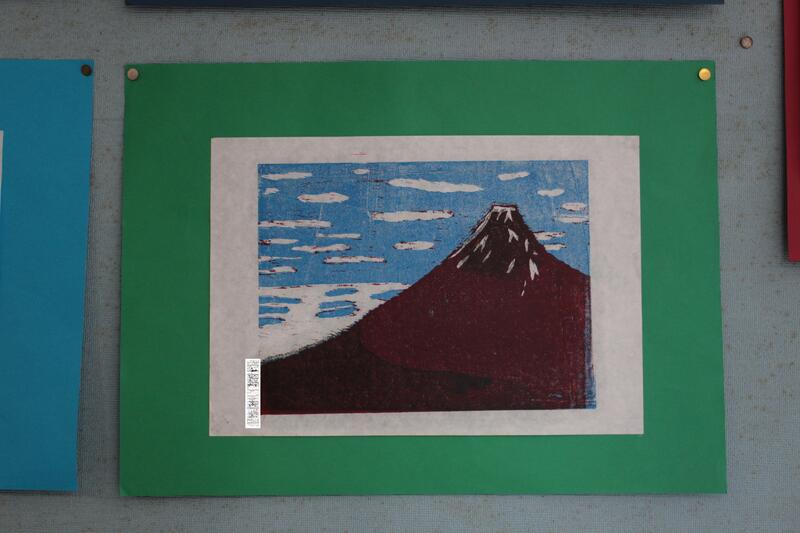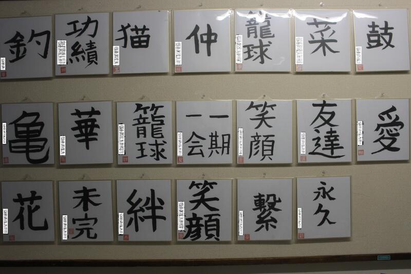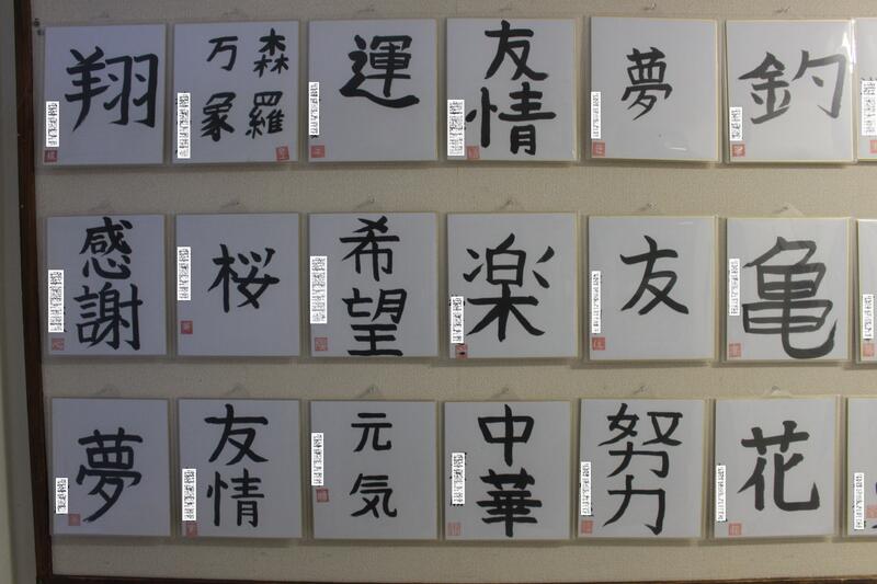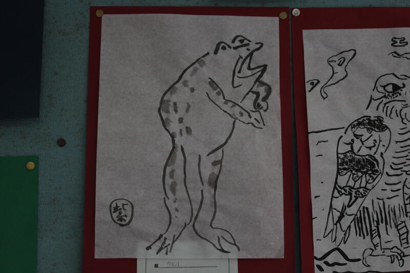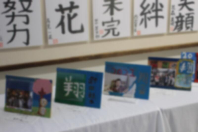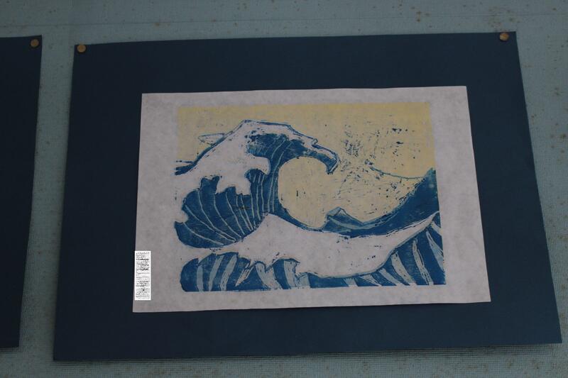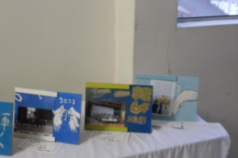 校内作品展が行われています。体育館前廊下に掲示しています。