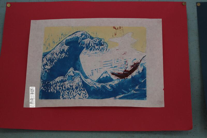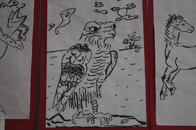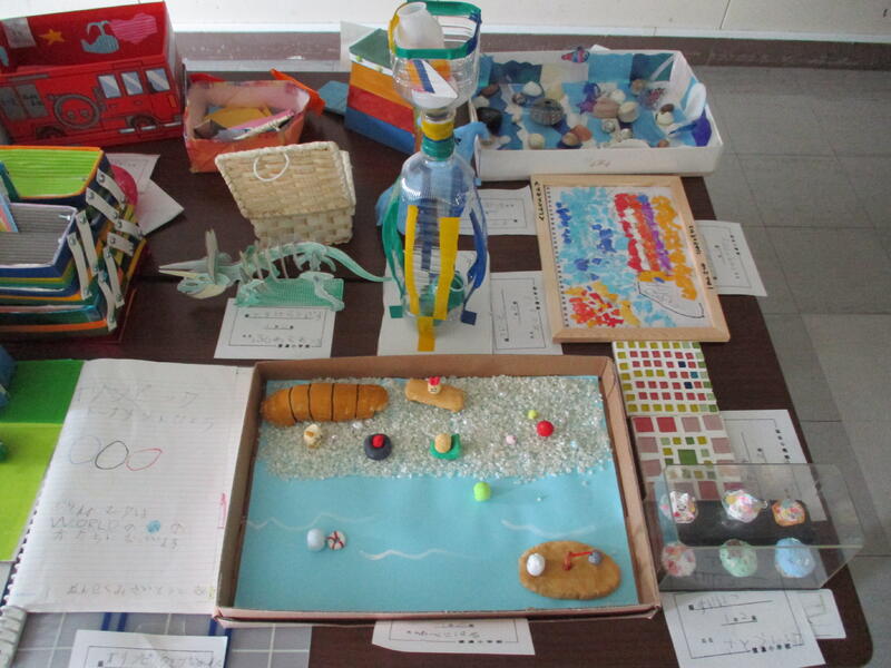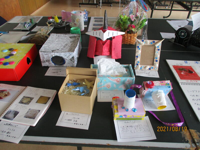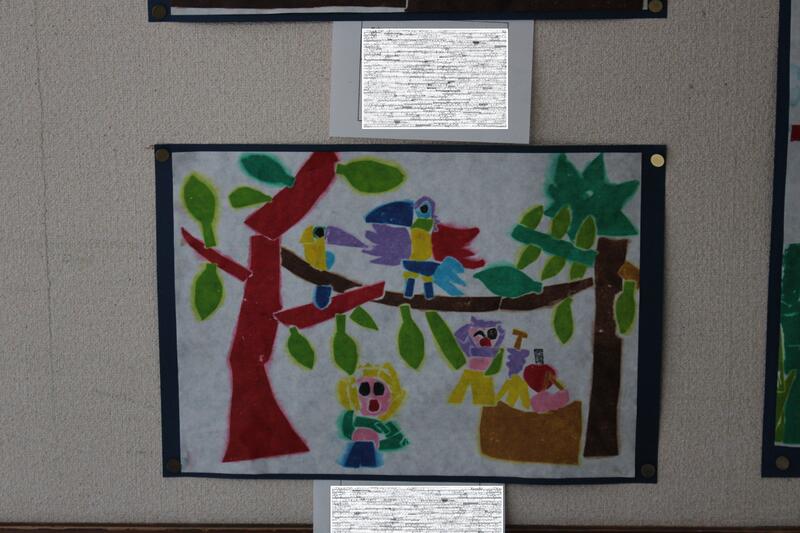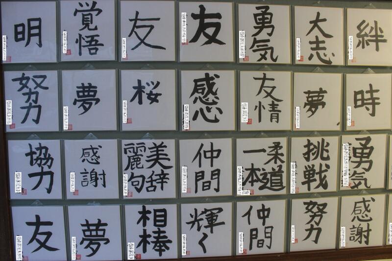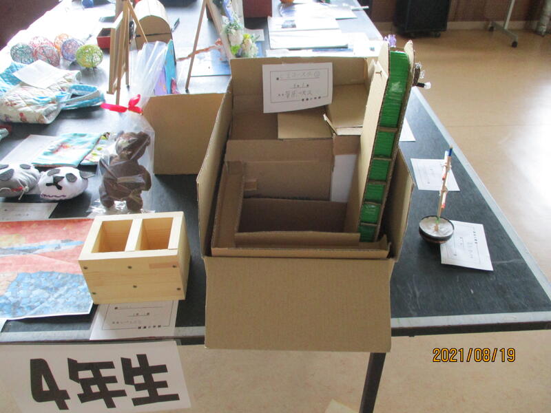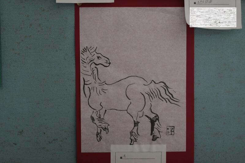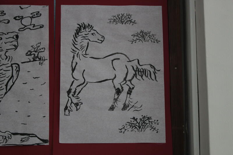 校内作品展が行われています。体育館前廊下に掲示しています。