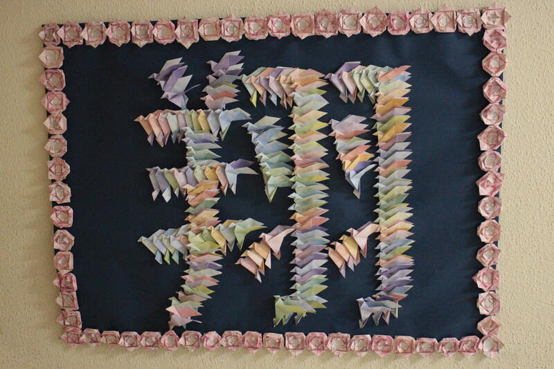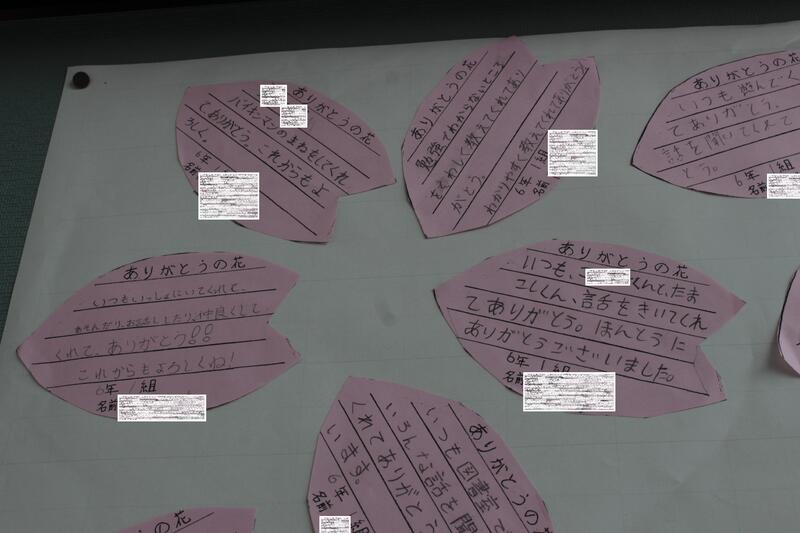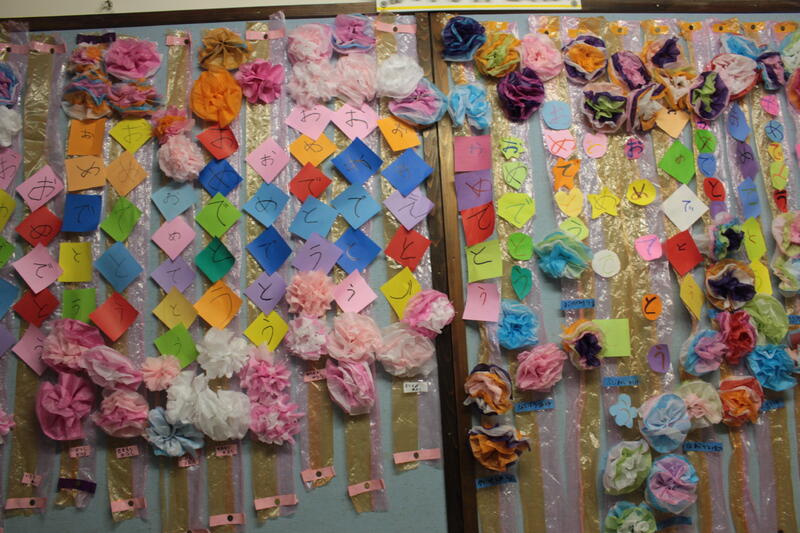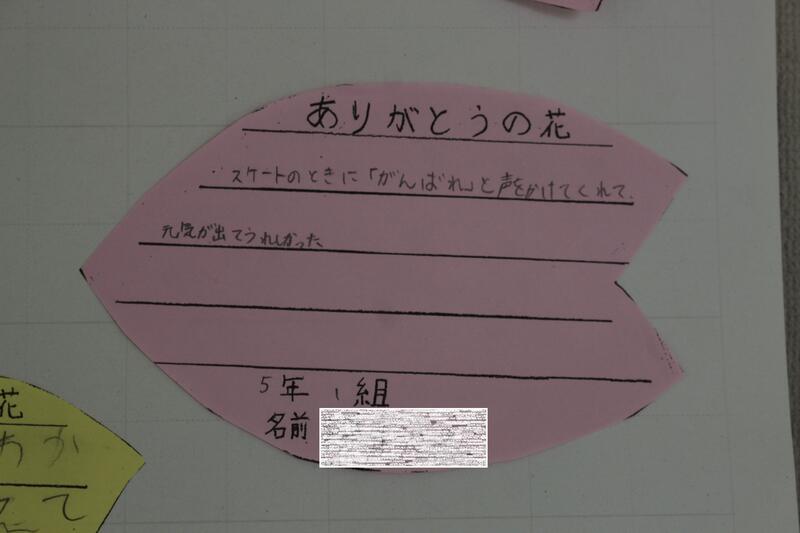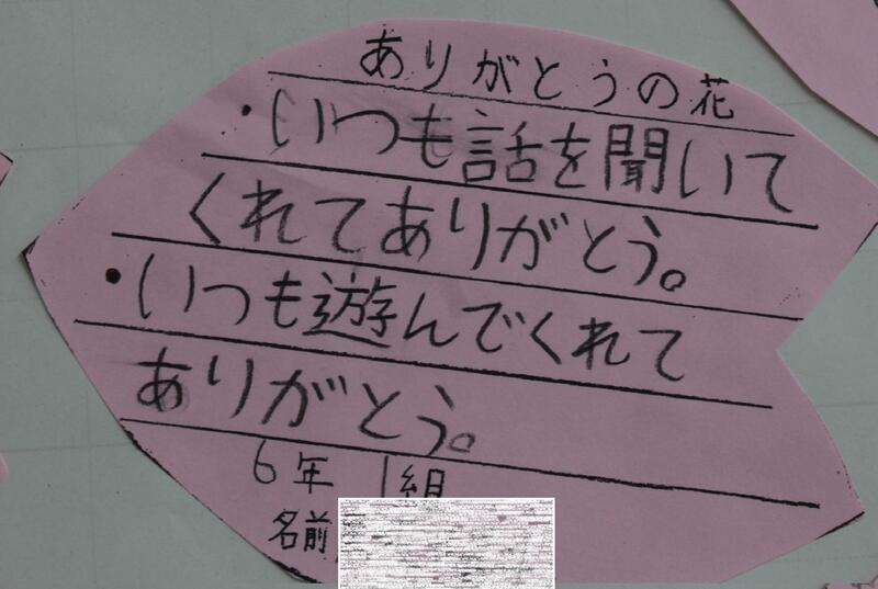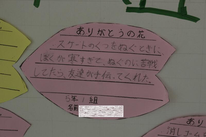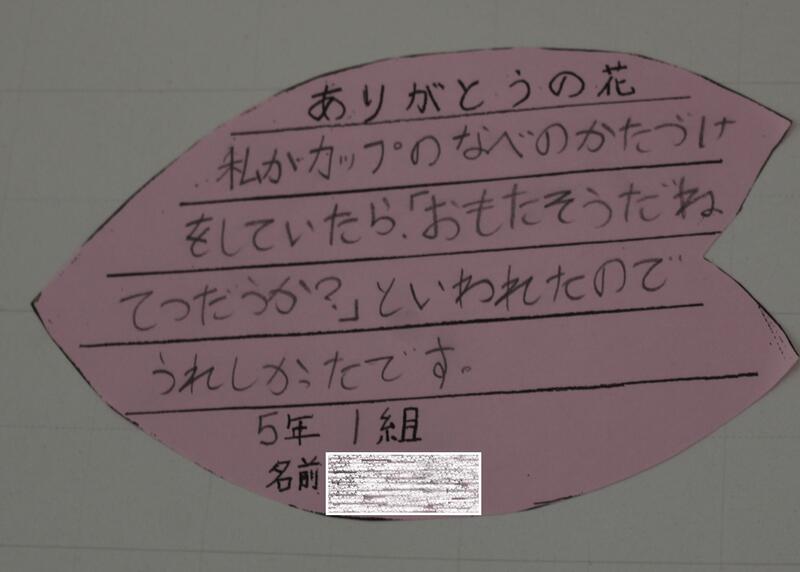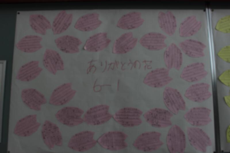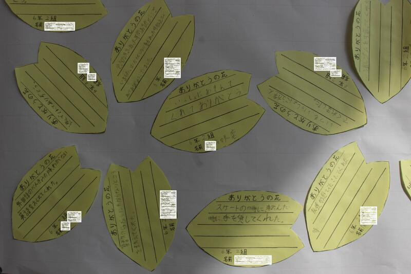 ありがとうの気持ちをみんなに知ってもらい、思いやりのある行動を増やすために企画されました。子どもたちの「ありがとう」と思ったことが書かれた花びらがたくさんです。